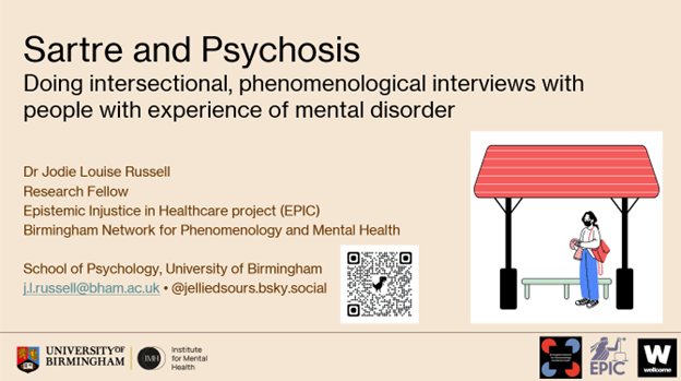 “Sartre and Psychosis: doing intersectional, phenomenological interviews with people with experience of mental disorder”, BioXPhi Summit, June 26th-27th 2025, University of Basel, Switzerland